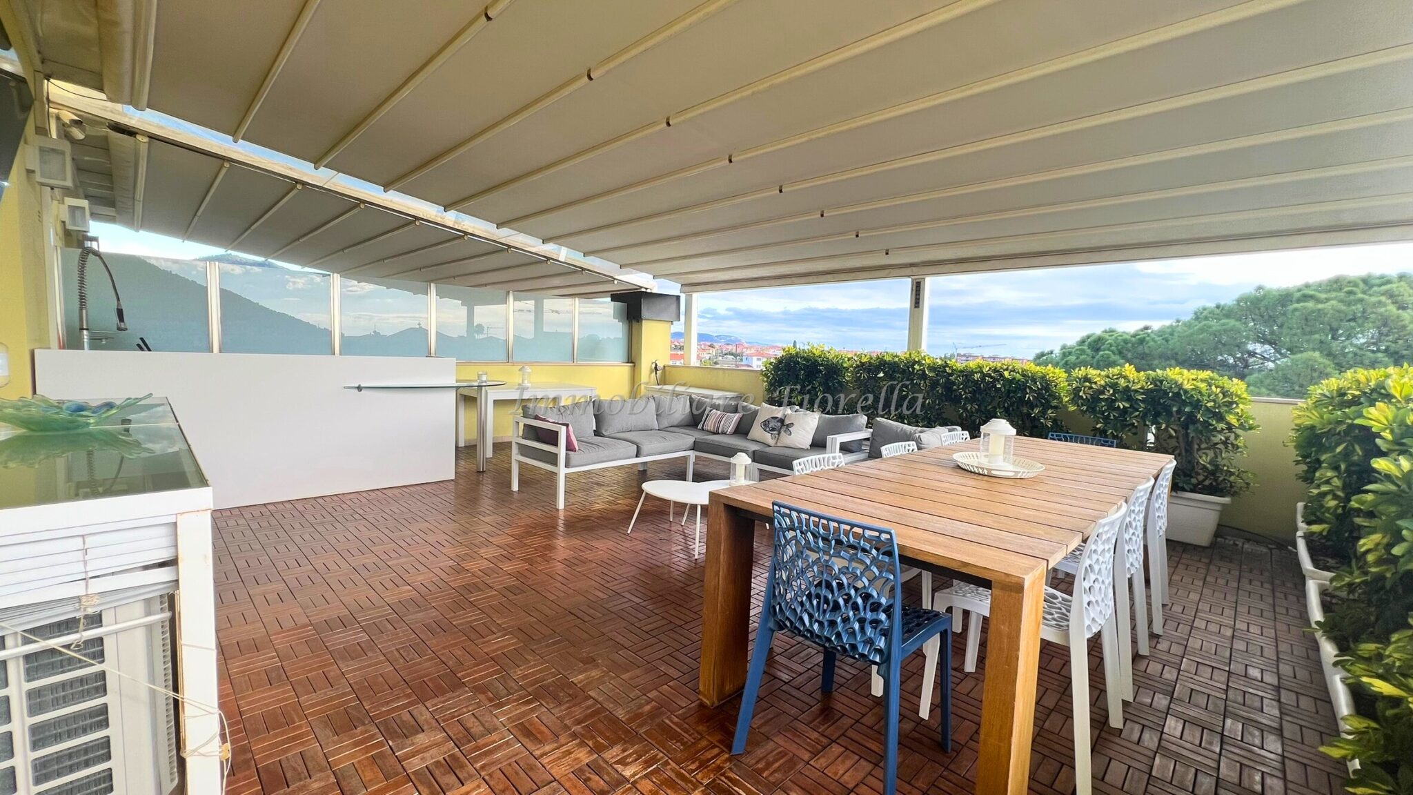 L’immobile si distingue per gli ampi spazi esterni, con due terrazzi vivibili, vista aperta e piacevole scorcio vista mare.